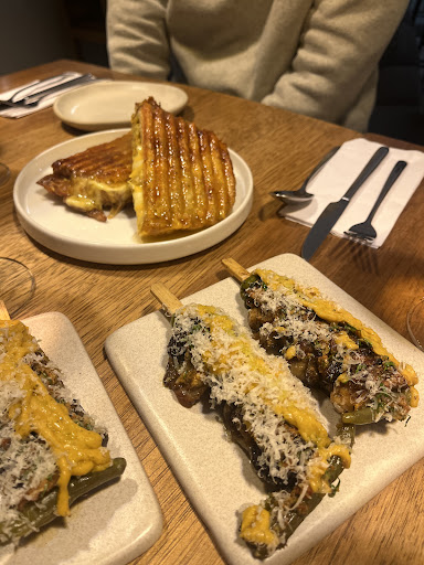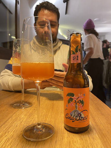 Imprecionante ver el crecimiento de este negocio, le había dado un follow ig por los brewing de bebidas alcohólicas entre 2021. Poco años después pasaron a mi barrio con comida ( la carta es más picada y rotan por temporadas) Interesante lugar como fine dining pero de picadas sobre 3-4 mesas y un bar, con opciones de bebidas alcohólicas y no alcohólicas en burbuja (cocktail & mocktail), lo cual me dejo en duda como llamar el lugar lounge-bar? Fine picaditas? Por favor si tiene opinión u observación, bienvenido sea. (Perdón, la experiencia viene con una historia larga, puedes hacer skip) Eh aquí un 2025, día de ley seca por elección electoral, perdida en que comer, de casualidad me acorde de plural; ley seca en un louge, ok vámonos perfecta escusa para estar en un bar sin tanta gente. Llegue nerviosa al local porque no veía el menú en línea; para mi suerte no tenía opción de carne blanca pero me ayudaron con un plato casi vegetariano, roasted capsicum acompañado de huevo frito bañado con caldito de pollo, topping goat cheese o crema de goat cheese y toque un hierba nativa (que no recuerdo nombre, pero que toque) a un lado pan de masa madre, para acompañar pedí una copa de naranjilla fermentada sin alcohol divino pero no iba con mi plato (lloraba por dentro que rayos me pedí); Javi (Cofunder de emprendimiento) me había sugerido una botella de fermento de café, sí café, pero yo no le di pass; amigablemnte te me dió un testing glass de la bebida de café, un sorbo combinado con el sabor tost de capsicum exploción en el paladar, it was f*king awesome (sí, esa era mi emoción por dentro) termine llena pero siempre con un mini espacio para el postre ordené la tasta vasca, otra maravilla! Un most! Acompañado de aceite de avo con queso parmesano, fue una mezcla de 3 en 1; el centro como un helado de vainilla, el medio un cream brulee y corteza exterior cheesecake, aquí si use la bebida de naranjilla ligero y refrescante completento! un twist que le di fue usar la tostada de arveja (mix de tostado, cortesia) combinado con la tarta me sabía a alga marina, para cambiar un poco de textura de vez en cuando. Regresaré por más de tarta vasca. Además de todo la experiencia, moraleja haz caso al chef para acompañar el plato! Tip: Entendí que estaría SOLO LOS SÁBADOS, Chavi, el barista, con café de especialidad. Deli! Ambiente y servicio si vas sola y quieres silencio sientate en las mesas pero si quiere un poco de compañía puedes estar en el bar; el personal es super cálido y welcoming, pero como de ser atendido en un restaurante, me ayudaron con restricciones de dieta/ alergia, te dan recomendaciones de acompañante, te preguntan en los primeros bocados si tienes algún problema, por eso es mi duda como debo llamar el lugar? Música 10/10. Sino habes que comer, aquí, aquí, pruébalo y me comentas. Ah! Y cuidado con lo que ordenas porque yo terminé usando mi gasto de fin de semana en este lugar, poco confundida emocionalmente, no sabia si llorar por que salí bankrupt o de felicidad, emociones confusas. No fotos porque no sabía que iba a ser buena, pero resultó tan buena este espacio....