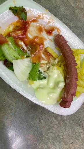 Found a hair on the papa fritas, we had to stand there to make sure they threw it away(they seemed to just put it aside until my brother stood there) , the food is very low quality, the sausage is mainly made of flour, the salad had no flavor at all, like I would’ve liked it to be at least with lime on the side or something, but all it was plain. Do...