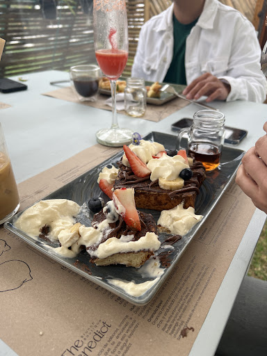 Las sillas son demasiado incómodas El café es regular La comida de sabor un 5. Las tostadas estaban quemadas a un lado y al otro crudas. Las porciones son normales, pero los ingredientes que usan no, si dice tocino espero al menos una loncha. No un trozo pequeño pulverizado Mala relación precio/calidad. El lugar es literalmente un patio con...