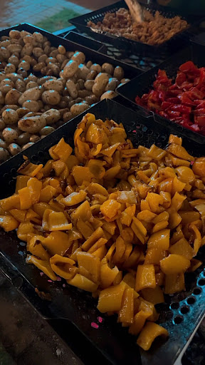 El bufé cuesta $38 por comensal, un precio relativamente alto considerando la calidad y variedad ofrecida. Además, es necesario pagar por adelantado, lo cual no es ideal. La selección de carnes es bastante limitada y la oferta de vegetales es extremadamente básica, con solo cebolla y pimientos disponibles. También hay que tener en cuenta que el precio no incluye las bebidas, lo cual incrementa el costo total de la comida. Esto hace que el menú sea muy básico y falto de opciones interesantes.