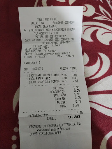 Sweet & Coffee - PrevisoraEdificio Santistevan, Av. 9 de Octubre 111, Guayaquil 090313, Ecuador