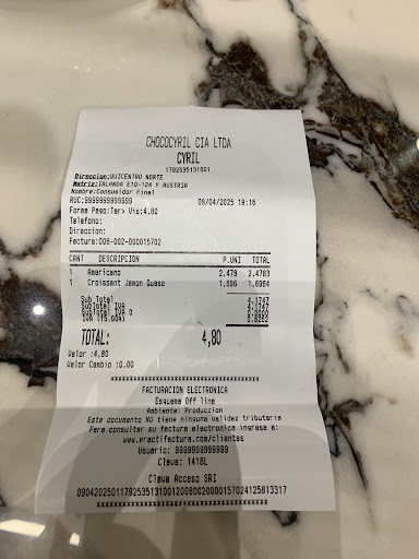 Read moreLos postres absolutamente 10/10 🤤🤤🤤🤤... es un lugar costoso, en comparación a otros sitios parecidos (2 postres y 2 chocolates... nos salio 18 dolares), pero vale la pena absolutamente los postres están super bien hechos y de sabor son exquisitos, se nota que se esfuerzan para que queden bien... la presentación es hermosa... pero son pequeñitos, si stas con hambre no es el lugar, pero si tienes un antojo son perfectos, nosotros acompañamos con chocolate caliente, yo me pedí el azteca, y estuvo delicioso, sin embargo el chocolate París... no recomiendo, siento que uno puede hacer tranquilamente en su casa...me gustaría que tuvieran una zona un poco más exclusiva ya que las mesas de este lugar están en el pasillo del quicentro prácticamente.. y aunque esta zona esta bien cuidada y limitada, siento que un lugar así debería tener un espacio más...