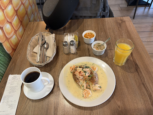 Read moreLlevo más de 20 años viviendo en Quito y es la primera vez que puedo decir sin lugar a la menor duda que he experimentado lo que es comer un verdadero "pan de yuca" (pan de almidón para los conocedores) crocante, crujiente y con el queso explotado. Ya he ido a desayunar dos veces y definitivamente volveré de nuevo, es espectacular también el ceviche estilos jipijapa, lo hacen muy muy bueno, incluso tomando en consideración que no le ponen sal ni limón para que uno le ponga a su gusto la primera vez que lo probé no me sentí el gusto pero con un poquito de sal y limón quedó perfecto. Los bolones también están muy buenos y en la torta de choclo es bastante decente Único tema que no me convence es que tienen un ítem en el menú llamado la "ensalada de frutas" bajo la sección bebidas... y pues como manaba, cuando uno pide ensalada de frutas y la veo en la sección bebidas, no espero algo que tenga de comer sino algo que beber, es decir lo que en la sierra se llaman "come y bebe", se que estoy en Quito, pero me emocioné de verlo en el menú, y cuando llegó, no era lo que esperaba. de todas formas el resto estuvo...