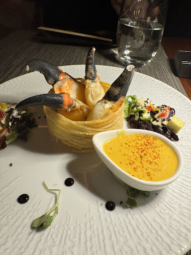 Food: We typically order several small plates at Asian restaurants to get a better feel for the establishment. This time, we were drawn to the Stone Crab Salad. The photos looked enticing, and the dish lived up to the visual appeal initially. However, it was more of a crab presentation than a salad. We received a few crab claws in a nest of fried dough with a minimal amount of green salad and cherry tomatoes on the side, perhaps two small handfuls. The crab itself was cooked well, but served cold, which negatively impacted the overall experience. The fried dough nest was incredibly dry and inedible, seemingly an unnecessary decorative element.