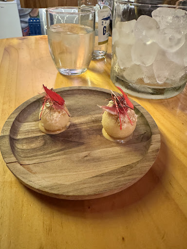The chef served us an appetiser on the house too - I couldn’t catch the description but they were fried dough balls with a tangy green sauce. (Is this bolon de verde??)