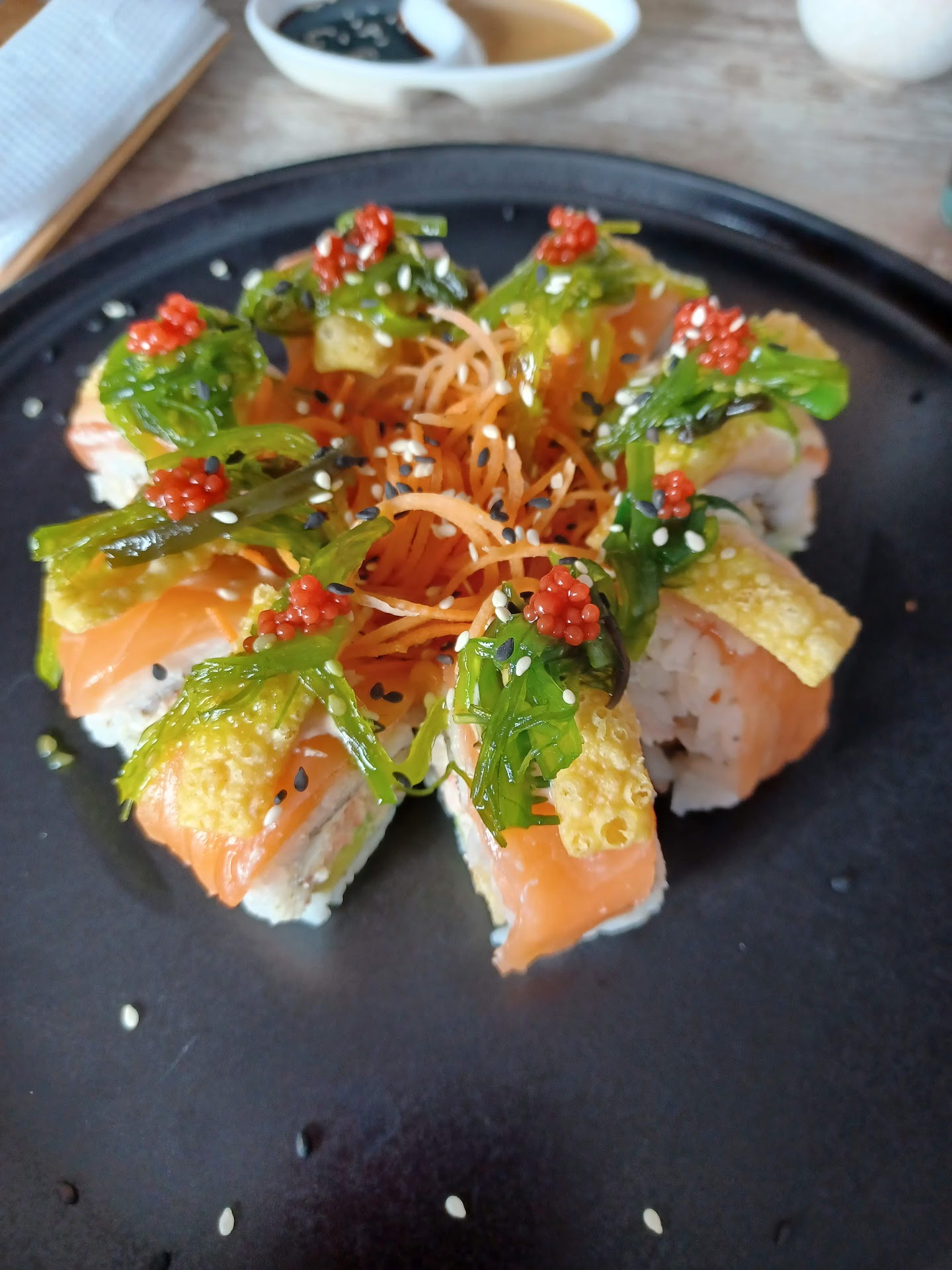 Destacan especialmente sus rolls exclusivos, creados con maestría y presentados con un arte que evidencia la habilidad de los chefs. La combinación de texturas y sabores en cada pieza es un verdadero deleite para los sentidos. Recomiendo especialmente el "Satori Roll", una obra maestra que combina salmón fresco, aguacate y un toque secreto que lo eleva a otro nivel.