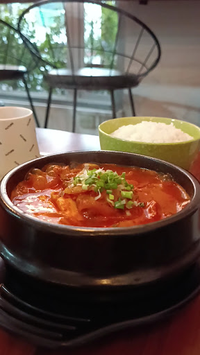 Read moreWow wow wow I may just go back here! We ordered two entrées a tofu kimchi hot soup and rice cakes both were amazing the server gave us some pickled radishes to pair with Our dishes and we also ordered a call ginger tea it was amazing. The atmosphere is good, I thought it was a little pricey each dish is around $10, but, honestly for what you get it’s a perfect deal because the quality is so good. There are also many Korean goods for you to buy which really does make you feel like your visit in Korea they also play K-pop music videos in the back...
