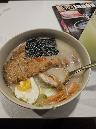 Los precios son súper elevados para lo que ofrecen Pagué $12 por un ramen que ni de cerca se parecía a un verdadero ramen. Fue una experiencia terrible. La comida, en general, dejó mucho que desear. Las limonadas sabían solo a saborizante artificial, nada natural. El ramen fue una total decepción: fideos demasiado gruesos, caldo completamente desabrido y el pollo, lejos de ser crujiente, era insípido.
