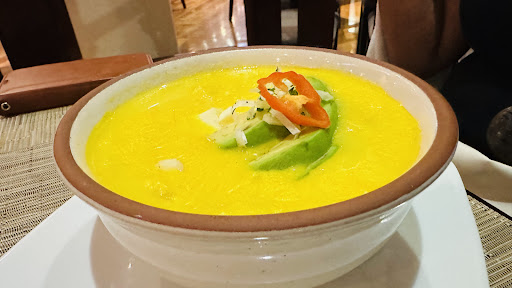 Upon arriving in Quito, I made my way to the welcoming Mercure hotel. The city greeted me with a brisk 53 degrees, perfect for indulging in some light, zesty fare at the hotel's Spicey restaurant. The menu was a delightful surprise, featuring the local favorite, Locro - a soup that's like a warm hug on a chilly day. The crème de yuca with shrimp was a masterpiece, with succulent shrimp swimming in a sea of rich, savory broth. It's the kind of dish that makes you want to lick the bowl clean!