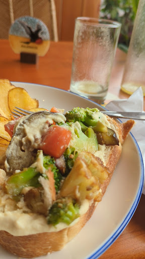 I feel so lucky to have stumbled upon ØY, this amazing restaurant on my first day in Santa Cruz. It immediately became clear that there's no point eating anywhere else on the island! So, that's what I did: returned here day after day. Julio, one of the owners is the heart and soul of this lovely place, he will make you feel like an old friend and his passion for great food will definitely inspire you. I've had a delicious breakfast that included grilled vegetable hummus sandwich, mango juice and moccacccino with almond milk. The deep fried cod is legendary, but the shrimp gyoza, sesame chicken or pumpkin with pesto & almonds are also excellent dinner/lunch options. Oh, did I mention that you can choose half portions, too? Thank you, Julio, for creating such a cozy, beautiful atmosphere, sophisticated & delicious food and especially thank you for the warm welcoming human connection, which in my opinion truly elevates this place to the highest level. Perfection at its best! 🙏❣️Way to go ØY, you're on the right track to become Ecuador's first Michelin ⭐...
