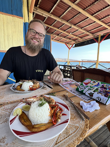 Anna, the owner is super nice and ready to help with anything you need. They have a lentil burger for vegetarians which is what we get every time. We were in Machalilla for a week. At night, they could build a fire if you ask and they use woods collected from the ocean. How cool is that! Anna even arranged a nice taxi for us to catch our flight in Manta and she came along to...