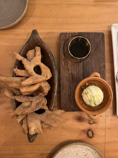 My fave was Puerto de Tarqui ($16), a ceviche. It’s described as an Ecuadorian-inspired coastal crudo with Spanish influence. The Mahi-Mahi (raw fish) was fresh and i loved eating the tapioca chips with the creamy almond sauce.