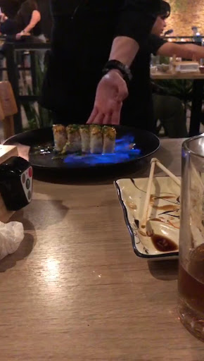 La próxima vez que vuelva me aseguraré de hacer mi pedido con anticipación. El servicio es lento pero si eres paciente vale la pena. Lo llamo fusión ecuatoriana y japonesa y lo que se obtiene está bien pensado y se ejecuta el dominio de los sabores. El ambiente es casual y divertido. Ofrecen en, así como al aire libre, asientos. Algunos de los platos que probé incluyen el pollo teriyaki, el taki (pulpo) de unagui (anguila) sake (pulpo) sobre el arroz. Rollos de cevichado, rollos de Arcoiris, rollitos de atún picante y por último, pero no menos importante, el rollo de Pasión. El rollo de la pasión solidificó esa última calificación de 5 estrellas. Fue fenomenal. No puedo esperar a volver y probar la Ensalada Izukuri sobre la que siempre escucho. Muchas otras cosas que no pudimos probar en el menú quedan por explorar. Volveremos pronto. Buen trabajo chefs.