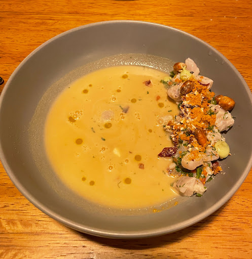 This restaurant offers a promising take on Ecuadorian high cuisine, showcasing creative dishes inspired by traditional flavors with a modern twist. We visited for a birthday dinner, hoping for a special and relaxed experience, and while the ambiance was lovely, the food unfortunately didn't quite live up to our expectations. The menu is certainly intriguing, highlighting the chef's innovative approach to classic Ecuadorian fare. I opted for the Yagua Tripa, a traditional potato soup known for its thick consistency. While the tripas (guts) themselves were exceptionally well-prepared and flavorful, the soup itself was surprisingly thin and lacked the rich depth I was expecting. It felt like a key element of the dish was missing. My wife's ribs, on the other hand, were a standout – truly premium quality. They were served with a bollo, a pairing that seemed unconventional at first, but ultimately proved to be a delicious and harmonious combination. The surprising synergy between the ribs and the bollo was a highlight of the meal. For dessert, we shared the cheesecake, which was absolutely fantastic. The distinct flavors of maduro (ripe plantain) and salprieta (a local seasoning) created a unique and memorable dessert experience. While the restaurant clearly has a vision and some real culinary talent (as evidenced by the ribs and the cheesecake), the execution of certain dishes, like the Yagua Tripa, needs some refinement to truly elevate the dining experience. With a bit more attention to detail and consistency, this restaurant has the potential to be a true gem of Ecuadorian high cuisine.