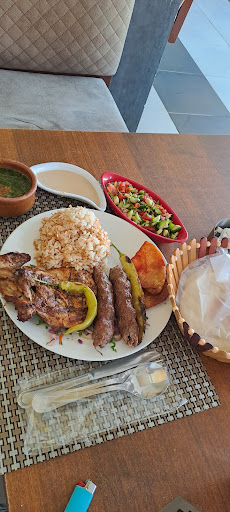 The Grill House, Mixed Grill is my favourite and getting it delivered is a much better experience than eating in and having to pay taxes and get cuts for placing my elbows on the table while eating. The tables have glass tops and yesterday I cut my elbow on the sharp glass top. I mentioned it to two waiters and nothing got done about it and I was asked by the waiters to let Ahmed the manager know, isn't that there job? Why they haven't done nothing about the sharp glass tops, I don't know? It's very disappointing and the bold waiter is such a rude git! So I personally prefer a takeaway. So, its still a 5 star for the food, shame about the service...