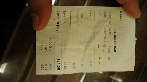 I showed the manager the post and he hesitated for a moment, but told us ‘okay what kind of cocktail do you want and i’ll get you one for free’ and i chose a simple gin and tonic. Besides that we ordered food and more drinks during the meal.