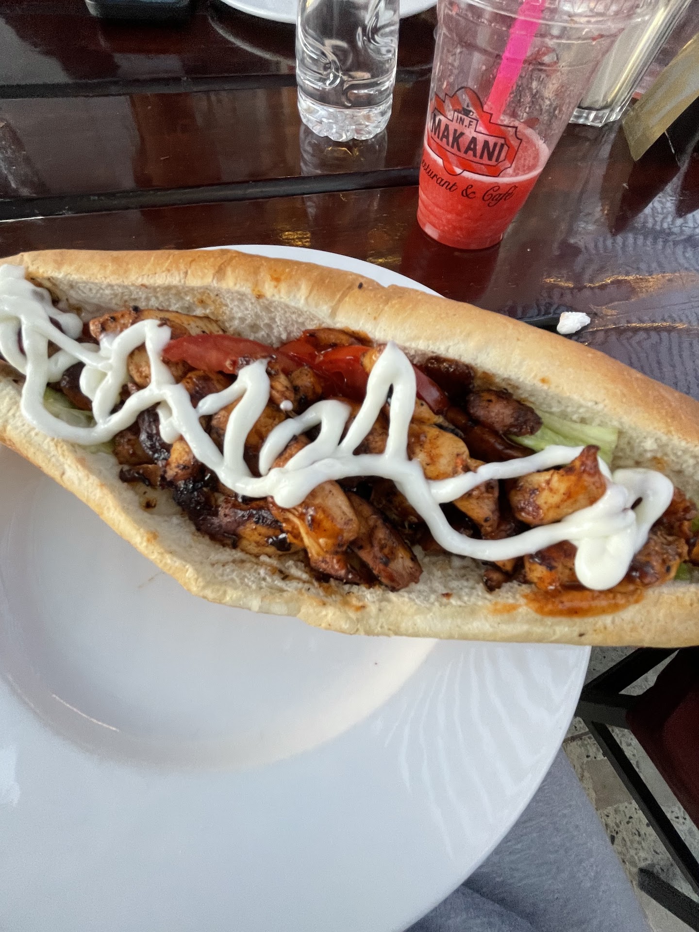 Highly recommend the Makani burger which is their signature chicken sandwich and definitely the highlight of our meal. My wife and I had the mojito mint non-alcoholic sodas and although a bit sweet I thought it was very refreshing. The Wings Roulette were tasty but lacked crunch. The fries were a definite miss. Cold, soggy... Not even sure what they were trying to do with those potatoes. Unfortunately we didn't even touch them.