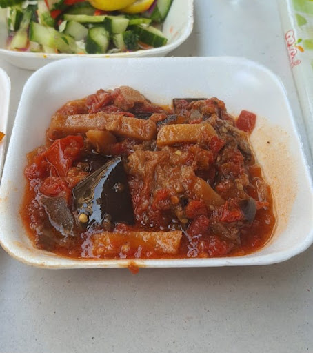 🌮 Ordered Fool Eskandarani without tehina and Mousaqaa. Came with sides of torshi (pickles), pickled eggplant and salad (they get the sides regardless of whether you ask or not and it is paid, I think, so if you don't want them, let them know). The fool itself was tasteless despite having a combination of oil, onions, chili powder and chili slices. The slices of chili were very overpowering and adding lemon to try to improve the taste didn't help. The mousaqaa (made of eggplant, potatoes, tomato sauce and tomatoes) was really unpleasant. I ate it regularly from another fool cart for a while - it was cooked in a similar way w/ the same components - but for some reason it tasted worse and I think the potatoes weren't well cooked.