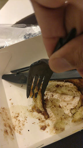 The experience didnt end there. I got mini classic Cinnabon. And it wasn't fresh at all. The fork broke midway cause of the stone dough i was cutting through. Video on post, watch and judge. 🤮🤮🤮