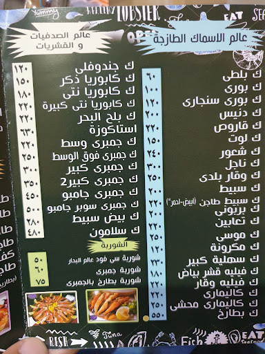 الإيجابيات : 1: تختار من حلقة السمك بنفسك 2: الأسعار بمنيو محددة وسأرفق صور له. 3: الطعم ممتاز خاصة السنجاري ( سمك مشوية مفتوحة) 🐟 4: المطعم نظيف ومرتب برغم أنه صغير 5: الأكل يوصل لك ساخن 🔥
