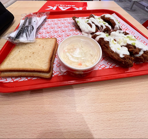 1- service was not good at all, staff are not customer oriented. And they have done the most annoying thing. while we are eating they came smiling and said” is it good? “ i am eating for god sake. 2- Atmosphere for me is presented in the vibes of the venue, The music volume was too high and i asked the team to lower the volume. The music cut off all the time. So put yourself in my shoe its so high and it cut off at the same time it was very annoying. 3- food, i ordered fried breasts pieces. The chicken it self was good but there was too much oil, i even had stomach ache when i got home. sauces...