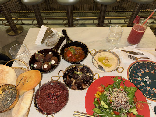 Read moreMy overall rating for this place is 3 stars. Let me start off by saying the places is stunningly beautiful, from the entrance way which is adorned with an amazing ornate mirror to every tiny detail of every corner you could not ask for a better atmosphere. The hostess Giselle and our waiter Yahya were super nice and both spoke English. So there are no complaints for service, every other waiter and a guy im assuming was the manager all seemed friendly with smiles on their faces and a chill work environment! Reservations were recommended down stairs however I insisted and found the place mostly empty, im assuming because it was not the weekend and very cold. Now unto the bad! The food is extremely mediocre at best, nothing stood out I ordered rounds of appetizers because nothing on the main course spoke to my soul and for those prices the food better had been good, thankfully I listened to my intuition because from the appetizers I would have not been pleased. Extremely expensive food for small portions that lacks flavor. The best thing out of the 7 mezzes were the Muhammara. If you have some money to burn for a beautiful Instagram story and photos then be...
