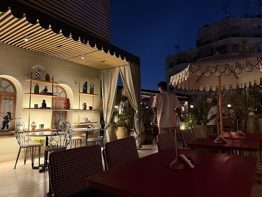A comback to the lovely Cairo downtown. Great renovation work of an old building that brings a spirit of Soho (NY) or Italian baroque upgrade. Atmosphere is created from the entrance music to the staff assistance and the Red carpet. Then the roof entrance , chapeaux for the interior designer, surely his hard work and creativity paid off. The setting on the roof is very fresh and pleasant. The experience needs little twiking from the staff and management, beverage service is at a loss, with no corrdination between staff. Staff should know when to clear the umbrellas at night, not wait for uncomfortable guest to request the effort. Staff should be more attentive with eyes on all the table to clear unwanted items (this is a high end restaurant NOT your friendly neighborhood cafe) little things means a lot. Reservation system was professional until the guest relations personal came and asked us to leave the table cuz other guests are waiting, her Etiquette was NIL (unfortunately that put a very negative end to our experience, some wnated to argue others just wanted to literally leave and shut this page of disappointment), ADVICE TO MANAGEMENT; GOOD HOSPITALTY MANNERs AND CURTSEY GOES A LONG WAY or short depends on your objective. Invest in 2 words on the confirmation email; time 20.00 - 22.30 (rsv duration 2.30 hours). That would have removed unwanted negativity and guest confrontation. (Unless you care about the table revenue margin).