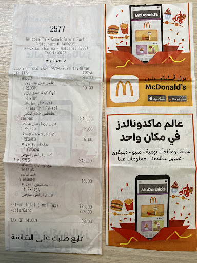 Cairo Airport. Macdonalds - terminal 2. Perhaps the worst chain restaurant we have ever visited. The tables are not cleaned, the cleaning lady lives in the telephone and as a sheriff, the problems of the Indians (visitors) of dirty tables do not bother her. There is chaos and confusion in the serving area and kitchen. The staff gets the orders mixed up. The electronic scoreboard and the real output each live their own independent lives. Our simple order for two adults and one Happy Meal for a child was simply lost. 20 minutes later And only after asking where our order was, they were surprised that they dared to ask a question. As a result, in a hurry, they began to cook and assemble. As a result, the cutlets were barely warm, and the child was not given a toy in the box. This is creepy, you better close this shop. We were surprised that they didn’t ask us...