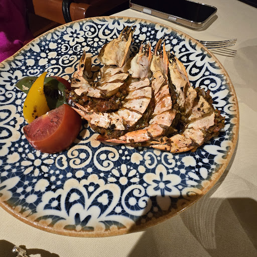 We ordered Mezze ( 6 different were served), the Jumbo Prawns and mixed Seafood baked in the oven.