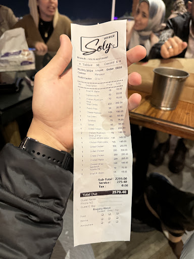 Final Verdict: Soly’s stands out not just for its stunning location and view but for delivering a consistent, quality dining experience that resonates with both the heart and the palate. With its warm atmosphere, diverse menu, and reasonable pricing, it’s a place that beckons for repeat visits. The Oriental sausage pie alone is worth the journey, adding to a menu full of gems waiting to be discovered. While the connectivity issues might deter some, they also offer a chance to disconnect from the digital world and immerse fully in the moment, making Soly’s an ideal spot for those looking to enjoy good food and great company, away from the distractions of the outside world. A true jewel of Corniche El Mokkatam, Soly’s is a testament to what a dining experience should be—delicious, welcoming, and utterly...