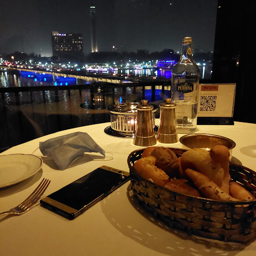 Read moreThe restaurant was inside the Samir Amis hotel, at the 3rd floor. And I must admit that the view was very nice, a lovely yellow romantic candle lighting infused with the deep blue color from the Nile view, what a beautiful view! The atmosphere was very calming, the hygiene level was perfect, the service was very good! The waiters were very friendly not only towards the foreigners (as the place was crowded with foreigners) but also to us Egyptians. However, if you are going there for nice dinner/lunch the food was (at least for my taste) not that good at all, I ordered one smoked salmon and chicken stuffed with caramelized onion for my fiancé (I forgot the plates name I am sorry) and I tasted both and both were very bad to my taste (I thought I ate boiled food!) I couldn't taste any smokiness to the salmon however the sauce underneath the salmon was tasty, I must point out that I am not used to eat French food before! Maybe this is how it tastes (but compared to our Egyptian taste I didn't like the food at all) the quantity of food was actually very good and fulfilling, the prices (as predicted from a fancy restaurant inside an hotel) were acceptable (maybe slightly high) but for the service and the view it...