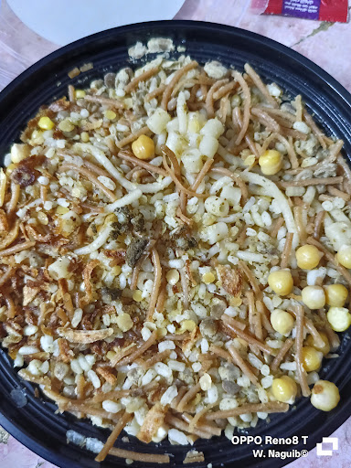 ٣- الكشري يكاد يكون عليه البصلة الجافة أو ما يسمي بالورد ولا حمص كعادة الكشري الشعبي في الشارع ... حتي كمية الرز تكاد تكون لا توجد وكله مكرونة.