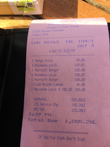 Read moreIf I could give 0 stars to this place, I would. Extremely rude and insulting behavior. I went there with my husband and friend seeing the photos. We are tourists from Canada. When we entered, we were not being attended at all. I had to go ask at the bar, and we were told to take a seat and wait. We asked atleast 5 different waiters, who passed by, serving other tables nearby. We just wanted them to start by opening the parasol because it was scorching heat. No one came! They kept on saying 1 minute, 2 minute until it was 30 minutes! They kept on ignoring us as if we did not even exist. I do not know if it was discrimination, because we were not egyptians or we were not wearing branded clothes. But this sort of behavior is unacceptable, especially it is ruining the image of such an iconic brand (Marriott). I have been to Marriott and its subsidairies in different counties and cities, but nowhere I got such pathetic behavior in the name of service! We waited an hour like that before we decided to leave in...