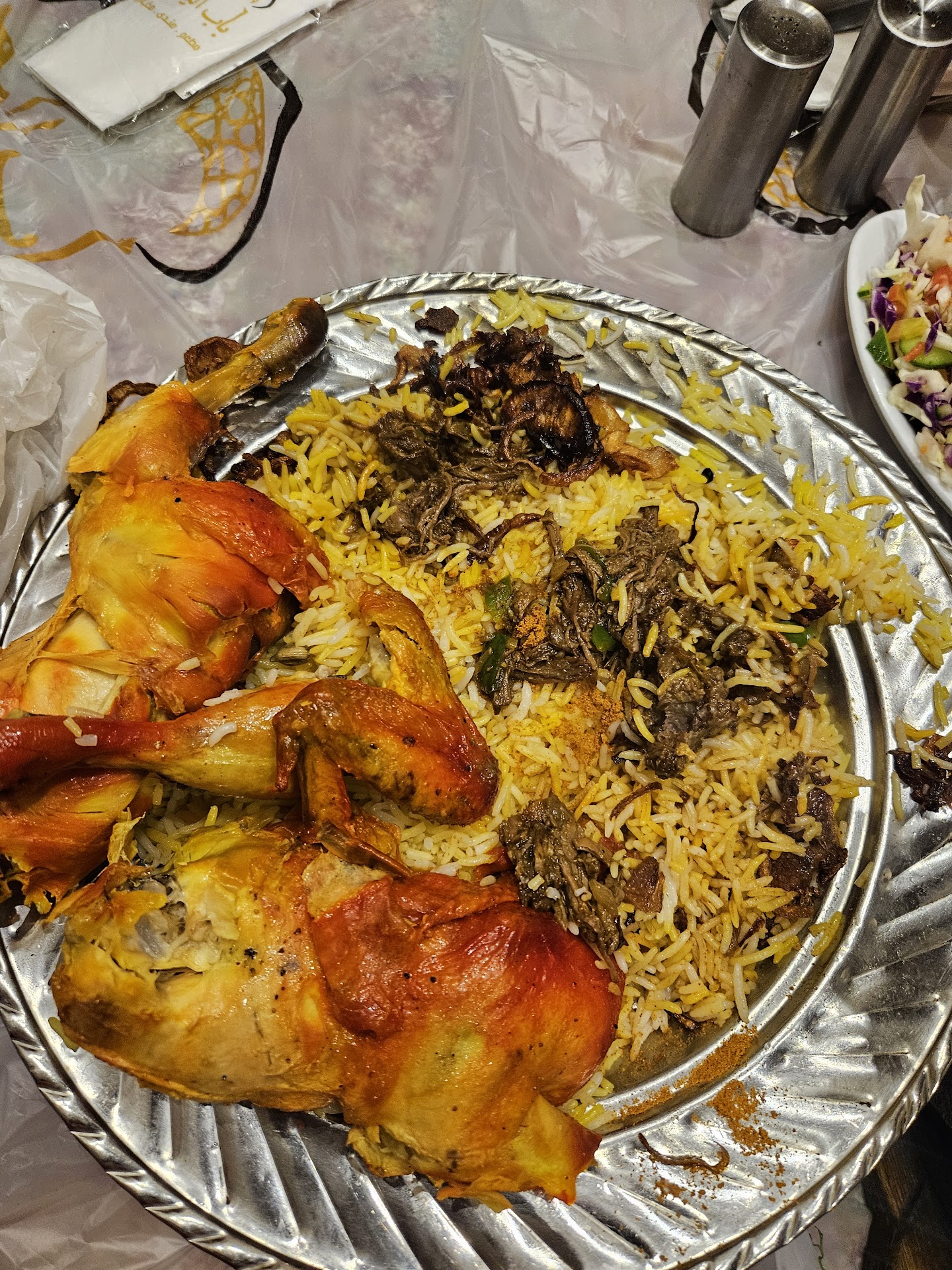 Read moreI visited today because I saw the reviews on Google and decided to try. As a Nigerian the rice was bland but I brought my Nigeria spice(Shatta/Yaji) and it was 💯, the rice is soft and well cooked, I wanted coal grilled chicken but unfortunately my request was the Gas grilled chicken but it was also good 💯 The rice is 1/10 but with my spice 8/10 The grilled chicken 8/10 very tender. The small green salad had no onions so I was pleased because you have bad mouth smell with onions. Also there was a green shatta blended,i didn't like it. The Fahsa was my favourite 10/10 but the quantity was very small(The beef chunk was like shredded and not much for the price but definitely a must try) Our waiter Habiba was very wonderful and friendly, 5 stars for Habiba!!!❤️ The decorations are average not extravagant but I love the different sitting options. There is private on chair and floor and public with table and chairs. Also there is a place to pray. The toilet...