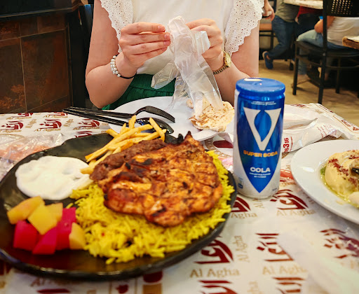 Read moreOur first afternoon in Giza, Egypt and we were referred to Al Agha for authentic local flavors and experience by both our airport transfer driver and a local bazaar owner! And it did not disappoint! It was bustling with local, friendly customers and Tarik, the manager, and many of the other staff were so nice and helpful in making suggestions and deciding what to try. We went with the mixed beef and chicken shawarma sandwiches with fries and salad. There was plenty of delicious food in the platters, and the price was great. The spicy sauce was so delicious we asked for the recipe. And you must have the mint lemonade! It was so refreshing and just the right balance of tart and sweet with fresh mint 😍. As if we weren't full and satisfied enough, Tarik offered the cheese dessert (I don't remember the name) that was the perfect finish to the wonderful experience. It was sweet and creamy with just the right crunch 🤩. We will definitely be back! We highly recommend it all! Thanks Tarik, and everyone else working...