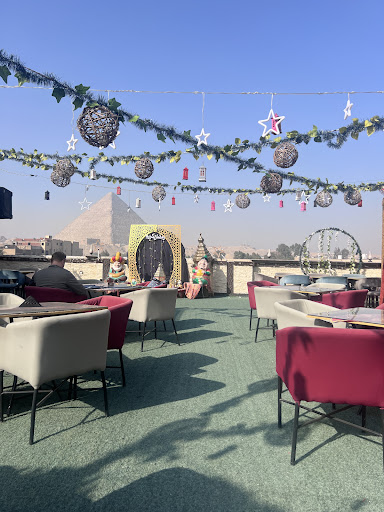 Read moreIt's the hotel's fantastic terrace with a breathtaking view of the Pyramid of Cheops. It feels like you can touch it... I have a delicious breakfast of typical Egyptian food, but also cappuccino, espresso, omelette, and delicious juices like orange and strawberry. I spend dozens and dozens of minutes savoring these dishes, admiring the grandeur of one of the seven ancient wonders. The reception service is very good: Hisham, Suruh, and the chef are very polite, almost shy, and try to accommodate every request. They are friendly. The rooftop is currently undergoing an excellent restyling. Highly recommended, also in the evening for an enchanting dinner in front of the immensity of the illuminated pyramid, and also for special events like baptisms, 18th...