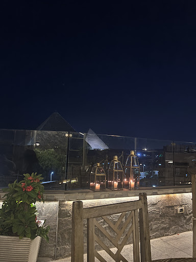Read moreFacts : place is not that posh as expected to be its just a roof top of an old blg ( motel) so around also u see roofs of other old blgs and it disturbs ur views if u wanna take pic with thr pyramids Food is not wow very normal u can get better taste and quality of food else where Price is extremely high for the location and quality of food Portion is very small for the prices for example each dish was not less than 850 egy pound we ordered fatta / pigeon / vine leaves with lamps chops / lamb rack Our bill for 4 people was 7,200 egy pound i think i can get better n cheaper in many other places