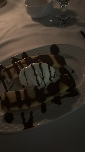 Das persönliche NICHT Highlight war dann zum Abschluss der Bananensplit. Zuerst dachten wir es wäre das eis mit Früchten. Banane mit (eis ?) zäh, keine Vanille keine Schokolade keine Sauce keine Mandeln. Stattdessen wurde es einfach mit Äpfeln ‚ausgarniert‘ Der ganze Teller sah in allem aus wie die Atmosphäre an diesen Abend als wir es besucht haben. Danke, kein 2. mal. Sehr Zum empfehlen der...
