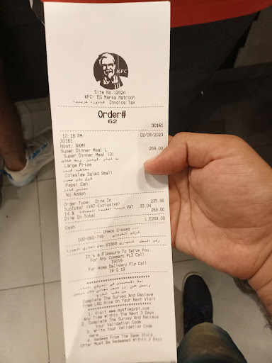 Read moreOnly 1 cashier standing at the register, speaks loudly with the other staff infront of the customers with very local launguage, with low attitude moreover he doesnt have enough change therefore he owed me 10 pounds and i didnt get it back Staff are not using gloves while perparing the food and are not sanitised I have ordered a mighty zinger sandwich which should include chicken breast slices but i was shocked when i saw stripes instead The toilet isnt maintained well and no door handle instead there are 2 screws!!! It has no offers listed on the website and they have only fixed menu pushing you to select from this menu even if you like...