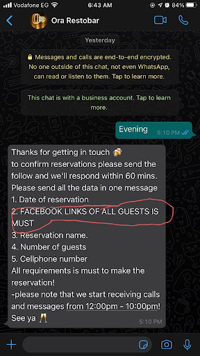 Read moreThey do not even deserve 1 star I tried to reserve a date there and didnt even continue in the reservation process. They are asking for facebook links for all guests! That's an absolute joke Stratification at its finest, I'm pretty sure that the management/owner of this kind of restaurants doesnt know the meaning of "good management" and "being open minded". Stop categorizing people and breaking into customers privacy just to ensure their suitability to your expected social standards! They are hiring and paying salaries for people to stalk customers! Poor you This retarded mentality should be banned and avoided. I've visited the most hip, fancy/expensive bars/lounges in europe and they dont dare to make such a request! Disgrace Not recommended...