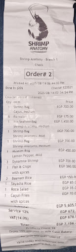 Also it's not a family place if you speak English. The entire time there they're playing trap music, talking about drugs, guns and sex. I guess the Management has no shame, because he speaks English. Maybe they think they're catering to Americans by playing the filthiest music on earth. I told the management the food was bad, they offered a discount, 50egp off from a bill that was 1450 . We didn't even finish the food we gave it back almost instantly. Bad experience . I've eaten at many fish places in Cairo this place is the worst so far. Fried fish at the sooq is much better . Don't waste your money....