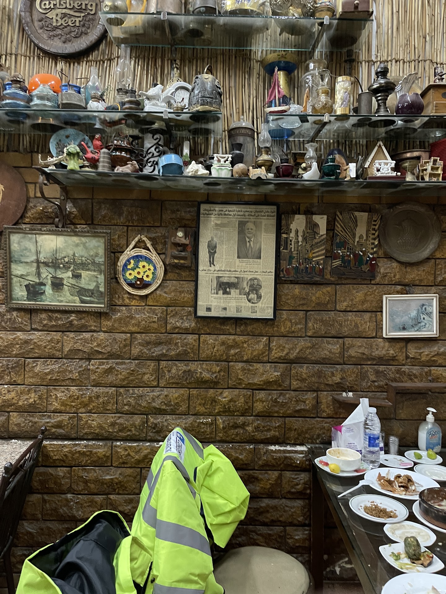 The place: what is so special and different this place is for sure it’s size and the decoration. It is a small restaurant that is taking advantage of every inch in the restaurant. The decoration is more one of a flea market than a fish restaurant. Old dolls, old phones, maps, Al Masry FC flag, you really feel like you are eating at your grandma’s house.