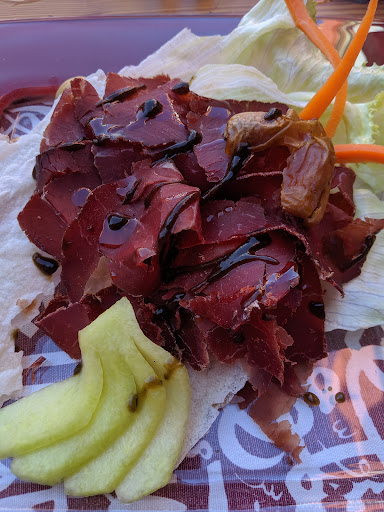 The restaurant is part of a massive all-inclusive establishment, where you can find hotel, spa, swimming pool, souvenir shops. I am the kind of tourist that wants to experience the full extension of a country and a region and mix with the local people, so from the first moment of walking in the restaurant I felt uneasy. We ordered the camel steak, and the water buffalo steak. The meat was very tasty, however we had to order extra side orders, because it came with no side. Too expensive, and overestimated. It reminded me of pub food with nice meat and a nice interior design. Only suitable for the ignorant...