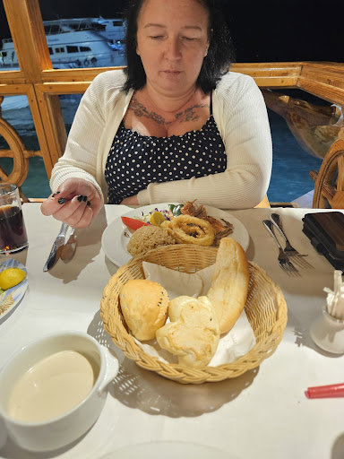 Ontvangst ging niet echt soepel, werden niet naar een tafel verwezen en moesten zelf maar kijken waar we gingen zitten. Mijn dochter had water in het verkeerde glas in geschonken daar werd belachelijk op gereageerd door het water weg te pakken en nieuw water in het andere glas in te schenken . Het personeel was erg arrogant en deed totaal geen moeite om het je naar je zin te maken. De voorgerechten waren voor de helft goed : de soep en de garnalen op Griekse manier waren lekker de salade die beide dochters hadden besteld had geen smaak de vis was droog en de inktvis niet vers, toen gevraagd werd of alles naar wens was en een van de dochters aan gaf dat ze het niet lekker vonden werd er niet echt aandacht aan geschonken. Drie man hebben de felucca plate besteld waarvan bij 1 persoon de kreeft en garnalen lekker waren bij de andere twee droog niet vers en geen smaak bij alle 3 was de inktvis niet te eten zo taai. 1 persoon koos de captains plate de kreeft was droog , geen smaak en niet vers de garnalen helemaal open gebarsten en we hadden het gevoel dat het opgewarmd in de magnetron was. Wat een gezellige avond uit eten moest worden werd een enorme teleurstelling ( je verwacht als je in een resort zit all inclusive en als je dan kiest voor een restaurant waar je dient te betalen dat dit goed is ) Met onze klacht dat het eten niet lekker was werd op een onprofessionele manier gereageerd , moesten het eerst 4 aan steeds weer een ander personeelslid uit leggen , toen moest er gebeld worden wat best lang duurde. Ze kwamen met een korting van 20% en een gratis dessert . Zelfs hierbij ging het mis ipv 20% hebben ze 20 euro korting geven en ons gemeurd was niet meer in staat om daar nog een dessert te eten dus we zijn naar het buffet restaurant gelopen om daar heel vriendelijk ontvangen te worden en daar nog wat te eten en te genieten van het dessert wat bij de all inclusive hoort en waar men wel weet wat service...