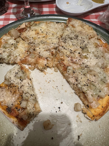 For main course two of us ordered pizza one ordered meat and one ordered pasta.