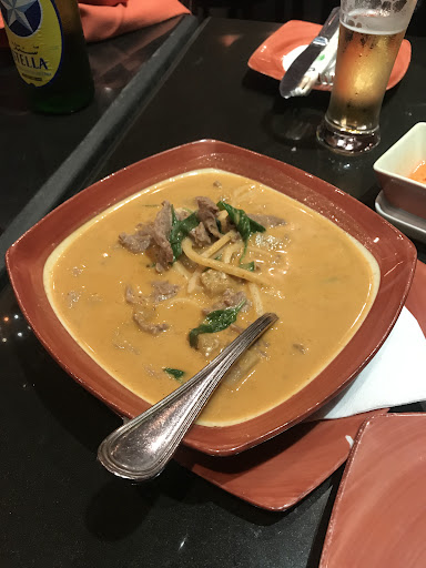 The waiter was very pushy and annoying by asking EVERYONE to leave a 5 star review. The reviews are in my opinion fake and I think people leave a 5 star review because they feel bad for the staff or something. The food was DISGUSTING, we ordered dumplings and got slime balls which were cold, sweet and just not good. The the wontons were not wontons, these were a bit luke warm and had barely taste. Every plate is decorated with sad pieces of lettuce, cucumber and carrots. The curre was not a curry, it looked more like milk which was dyed red with some oil on it. The chicken was just sliced in the curry and looked sad. There was eggplant in the curry which made me almost throw up. The rice was meh. The sauce around the prawns tasted nice but the prawns itself had a weird texture and after taste. The only thing that was okay was the noodles with chicken.