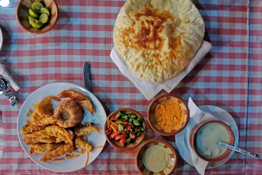 they tried and partially succseded to steal fr9m us. i wanted to order a salad and they told.me insted, they bring with the fish mutipule salad types (this practice is coustomry in arab countries) however they chardged us all these salads (and much more pricy than it should have been). i asked for mayo sauce next to.my french fries, they brought us garlic sausce.insted (they do not have mayo) and they charged us that 150 EL (disrespictful and shameful) and last but not least, they insisted we orfer shrimps and we did not know why they insisited, but nontheless we ordered 0.5 kilo grams.. .but we barely got 10 pices of shrimps. 10 pecies of shrimps are diffently not 0.5 kilo. they also chraged us diffrent fish at a weightuch more than it should have been.