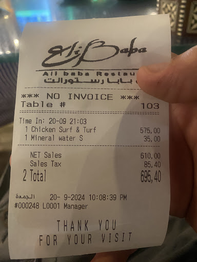 Warm and Welcoming Atmosphere: From the moment I entered Ali Baba I was greeted with genuine warmth and hospitality. The ambiance was cozy and inviting, setting the stage for a delightful evening. The staff was attentive, friendly, and knowledgeable, making me feel like a valued guest throughout my visit. Culinary Excellence: The food at the Restaurant surpassed all expectations. Each dish was a masterpiece, showcasing the skill and creativity of the talented chefs. From appetizers to desserts, every plate was a work of art. The ingredients were fresh and thoughtfully sourced, resulting in a burst of flavors that delighted my taste buds. Whether you have a preference for seafood, vegetarian options, or succulent meat dishes, Ali baba has something to satisfy every palate. Impeccable Service: The service at Ali baba was nothing short of exceptional. The staff was knowledgeable about the menu, offering insightful suggestions and answering any questions I had. They were attentive without being intrusive, ensuring that every need was met promptly. The attention to detail and personalized care added an extra touch of luxury to the dining experience. Value for Money: In addition to the extraordinary food and service, Ali baba offers excellent value for money. Despite the high quality of the ingredients and the skill involved in creating each dish, the prices were surprisingly reasonable. The portion sizes were generous, leaving me and my family fully satisfied without breaking the bank. It's rare to find a restaurant that combines top-notch quality with affordability, making [Restaurant...
