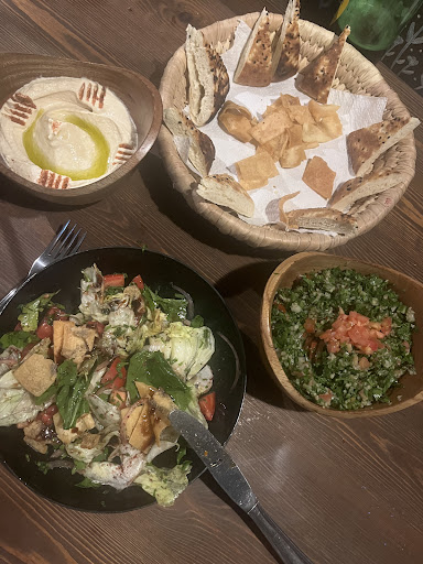 Read moreWe first tried Nawaem back in April 2023 and we were beyond surprised of the creative Menu (We were a group of 5 and were attentively served by Shady himself, a great Jordanian host who gave us a very good restaurant mood experience ) , there was also good music & live paintings exhibition and few art pieces on sale. However, 2 of us came back last Saturday 5th of August where we were left so disappointed and confused about how consistent this place can be. We ordered 2 Appetizers (Pesto Hummus & Spicy Potatoes cubes) and 2 main salads (Avocado Salad & Chicken Salad), All 4 orders were bland in taste and the potatoes cubes were so little & empty in density sleeping on huge amount of greenery. The place was empty, dull lighting (which is always a drawback for their spot) no music at all and we couldn’t communicate our concern to the waiter specially we were already too hungry to change our order.