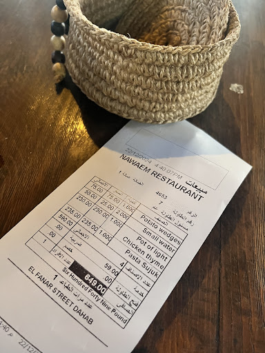 Read moreWe first tried Nawaem back in April 2023 and we were beyond surprised of the creative Menu (We were a group of 5 and were attentively served by Shady himself, a great Jordanian host who gave us a very good restaurant mood experience ) , there was also good music & live paintings exhibition and few art pieces on sale. However, 2 of us came back last Saturday 5th of August where we were left so disappointed and confused about how consistent this place can be. We ordered 2 Appetizers (Pesto Hummus & Spicy Potatoes cubes) and 2 main salads (Avocado Salad & Chicken Salad), All 4 orders were bland in taste and the potatoes cubes were so little & empty in density sleeping on huge amount of greenery. The place was empty, dull lighting (which is always a drawback for their spot) no music at all and we couldnât communicate our concern to the waiter specially we were already too hungry to change our order.